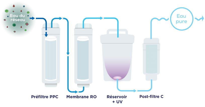 Notre osmoseur propose 4 étapes de filtration et stérilisation par